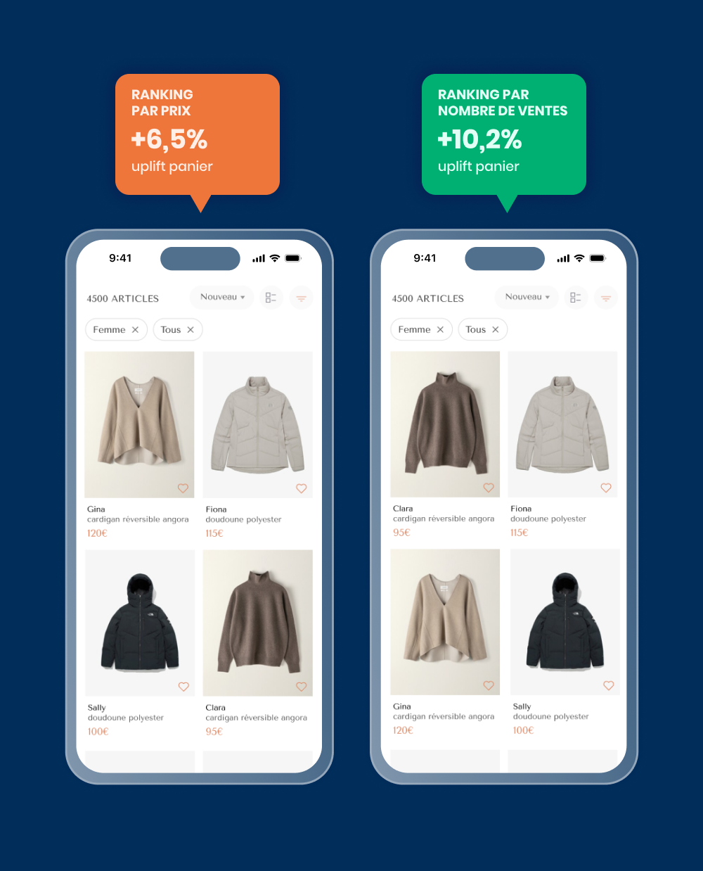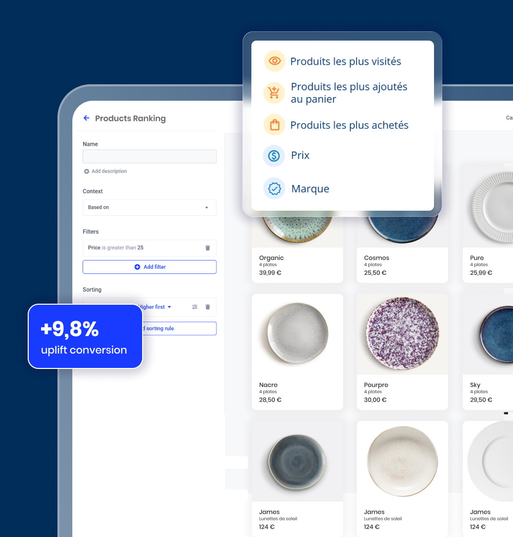 Vous avez déjà les produits. La question, c’est : lesquels vous mettez en avant — et à qui. BEYABLE vous aide à optimiser votre e-merchandising pour guider vos visiteurs vers l’achat, augmenter la valeur du panier, et améliorer la rentabilité sans dégrader l’expérience :
